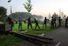 Reenactors set up a perimeter