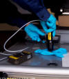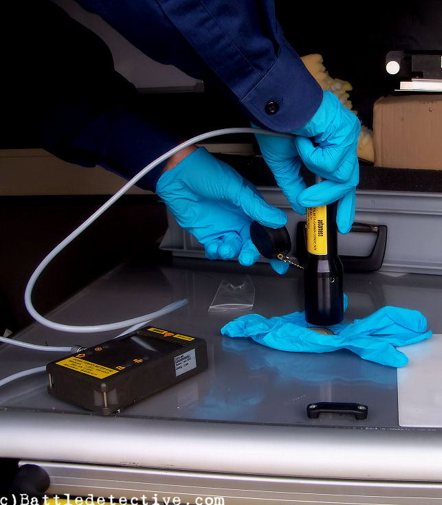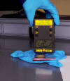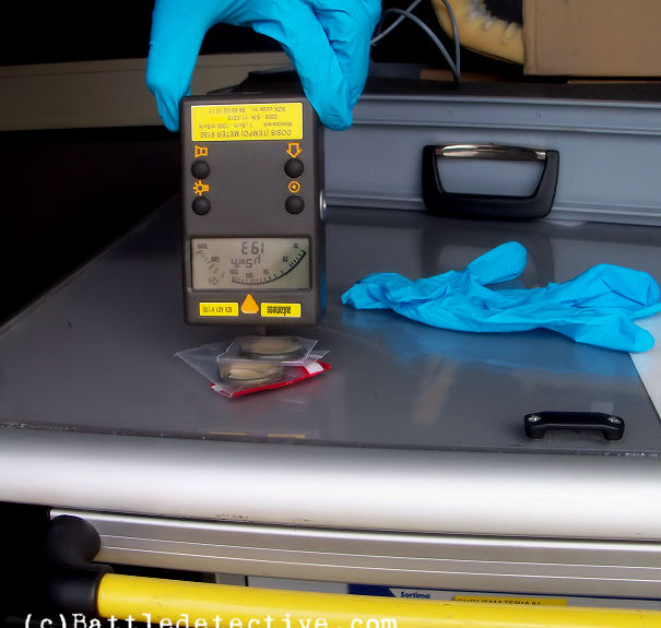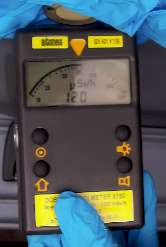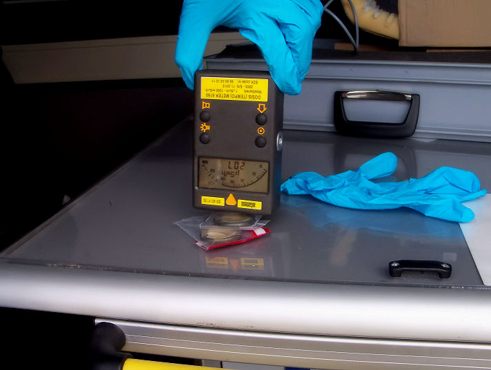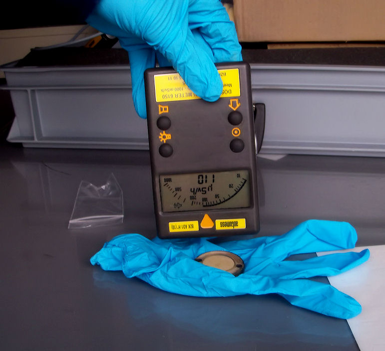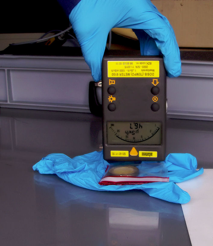 the dose meter over it and listen to