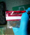 powder inside the Plexiglas bubbles,