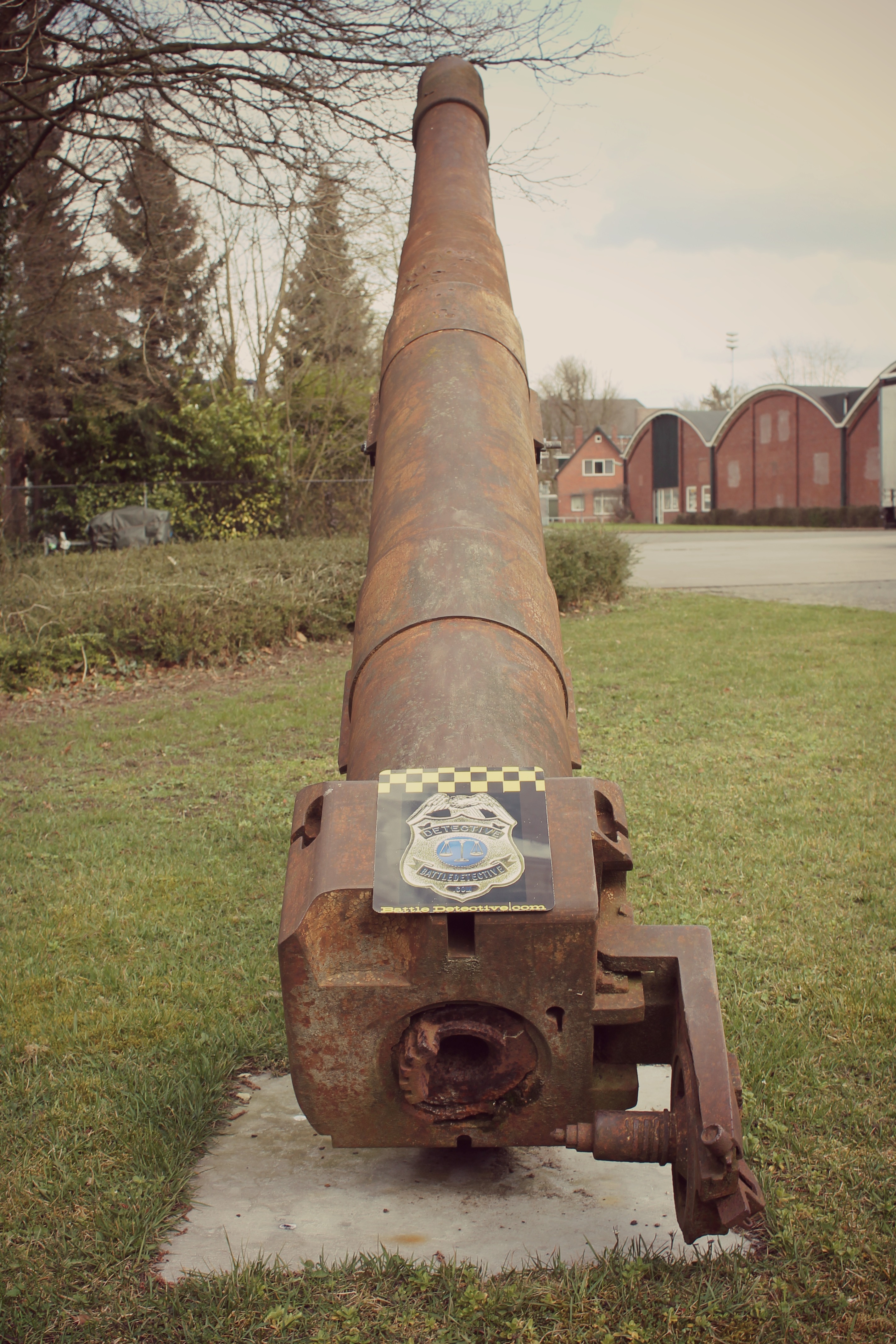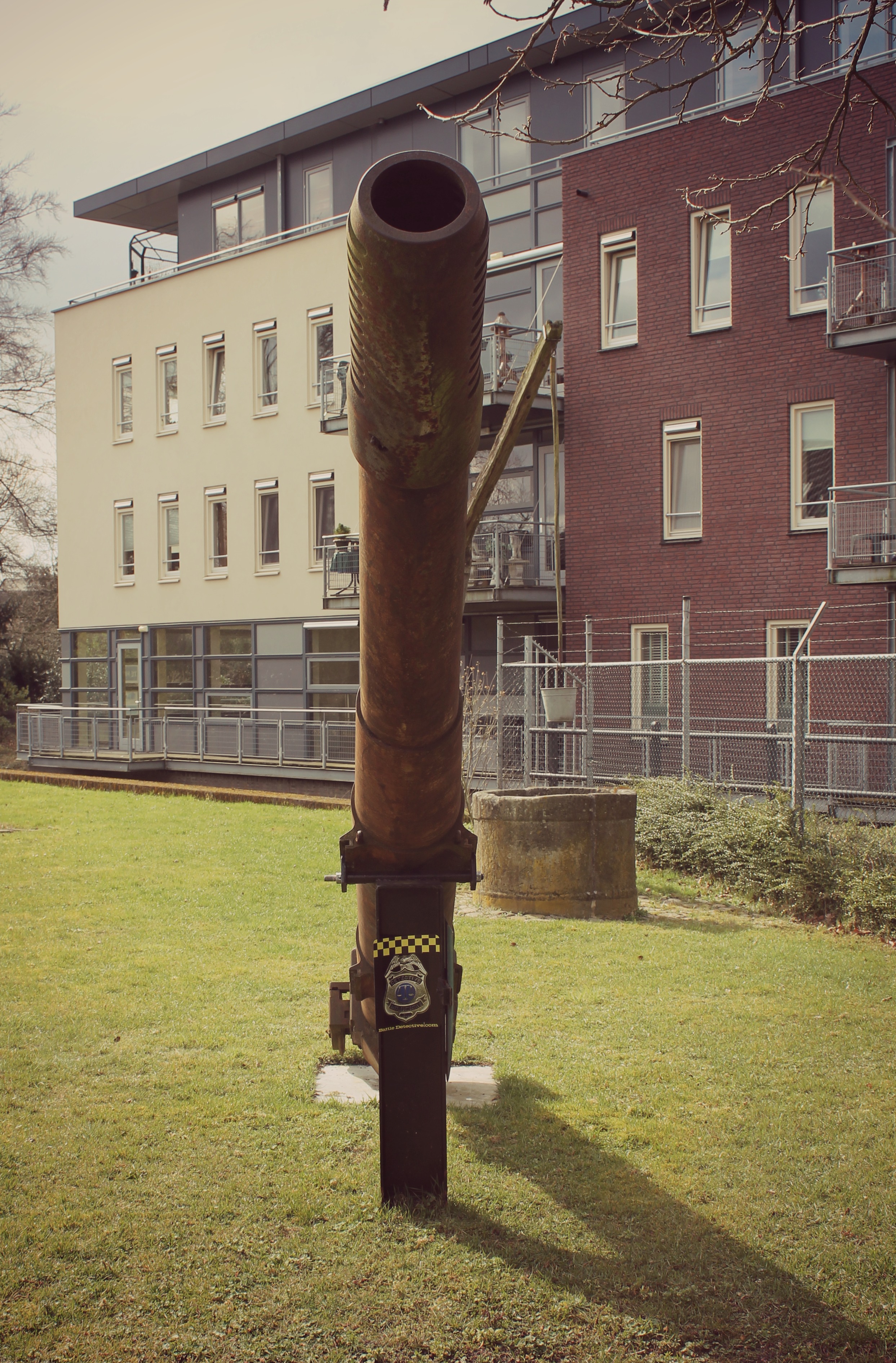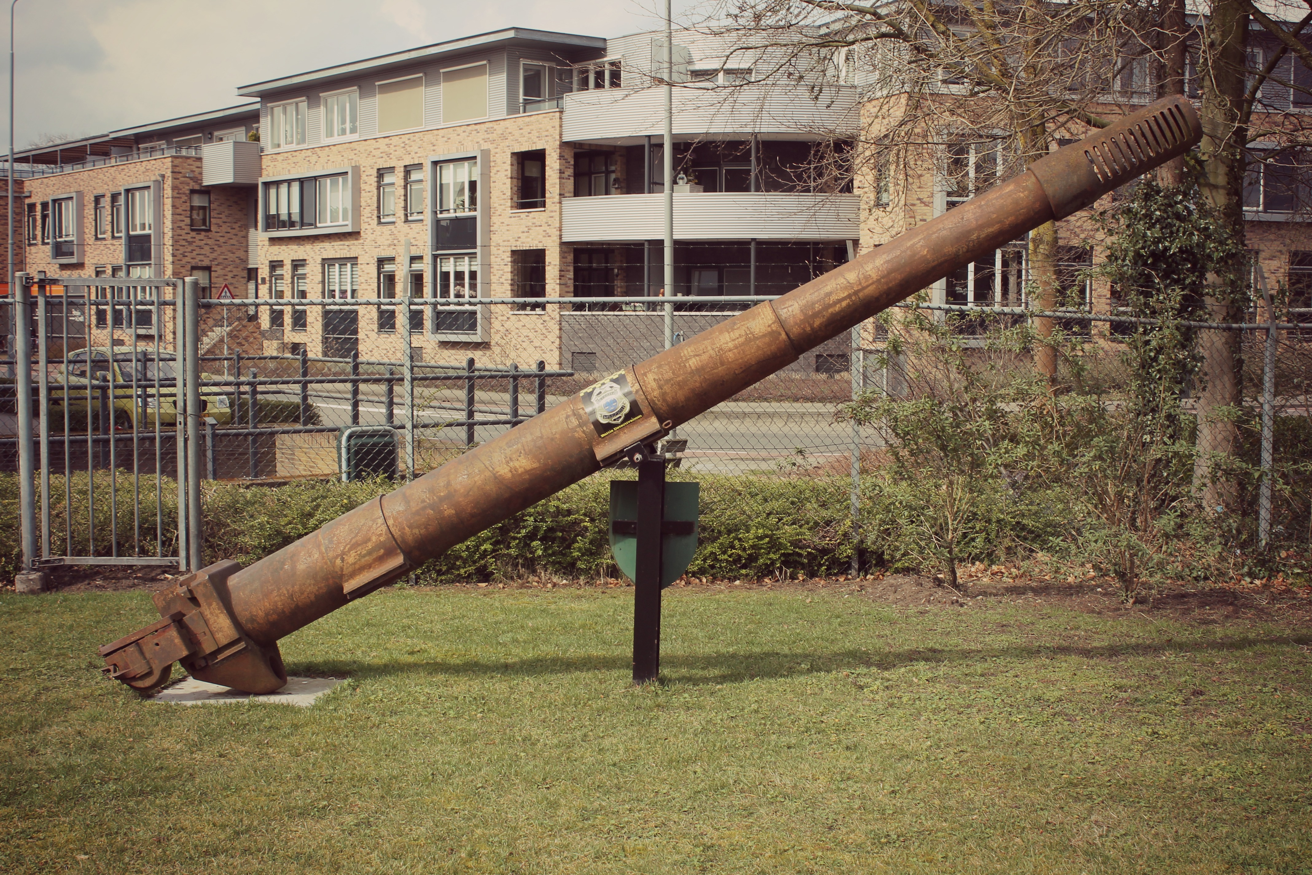 gun barrel section on a pedestal on