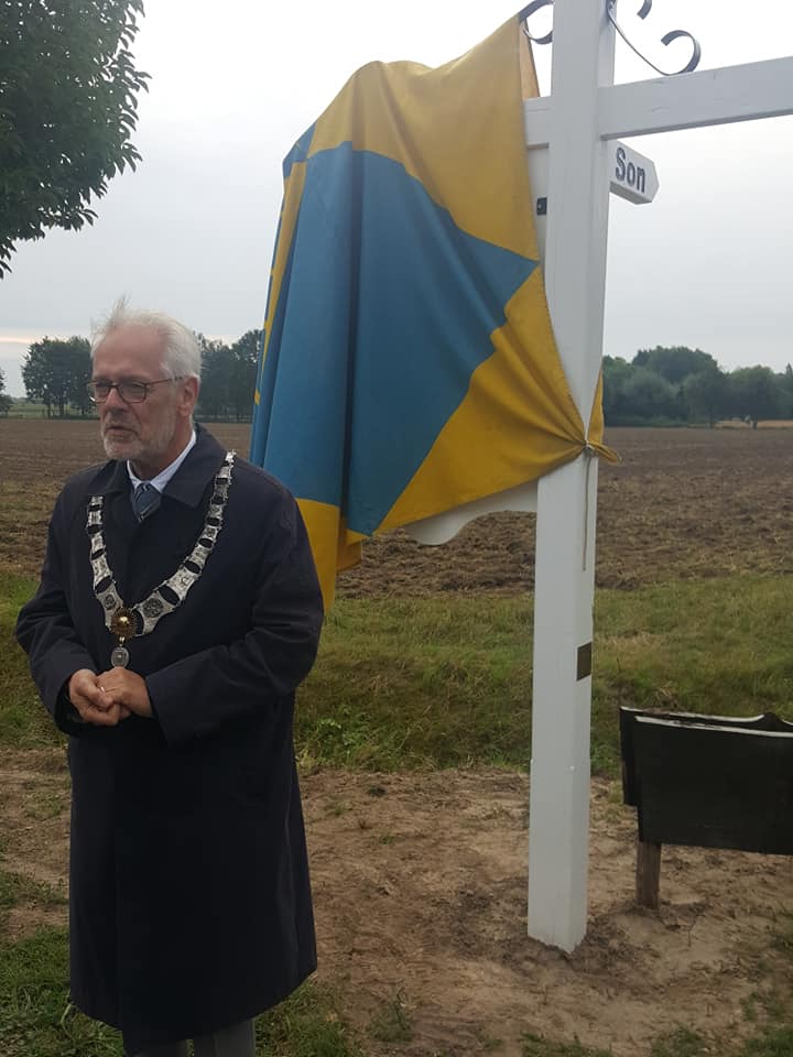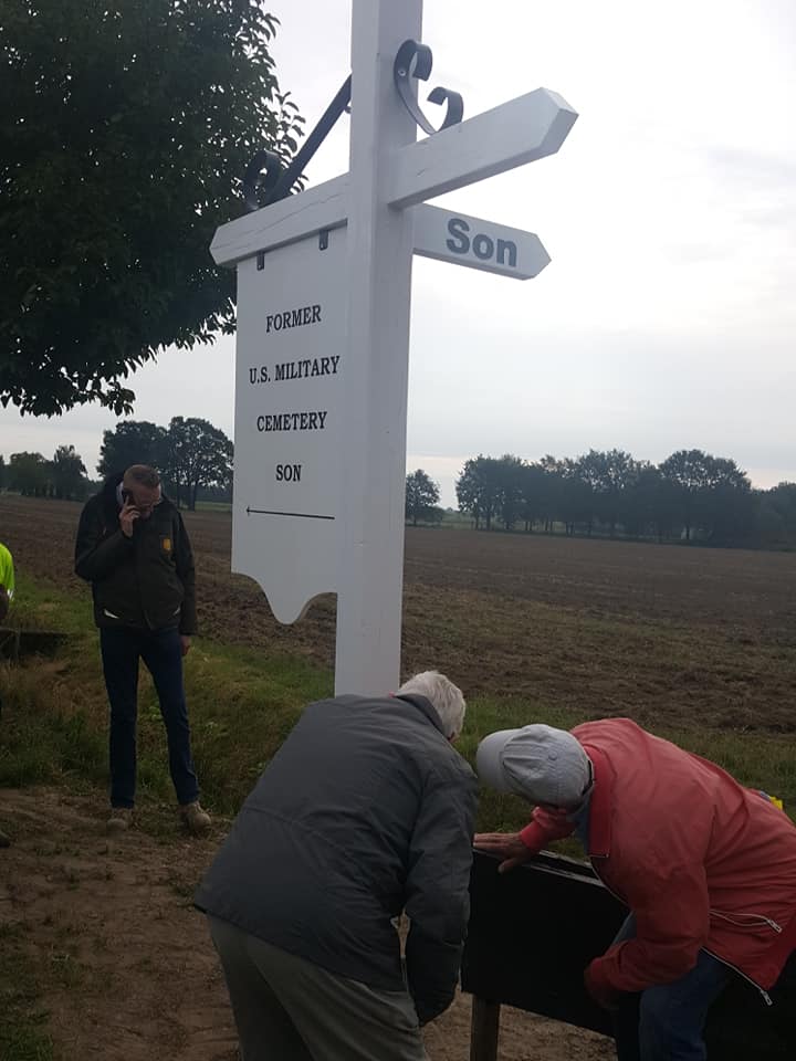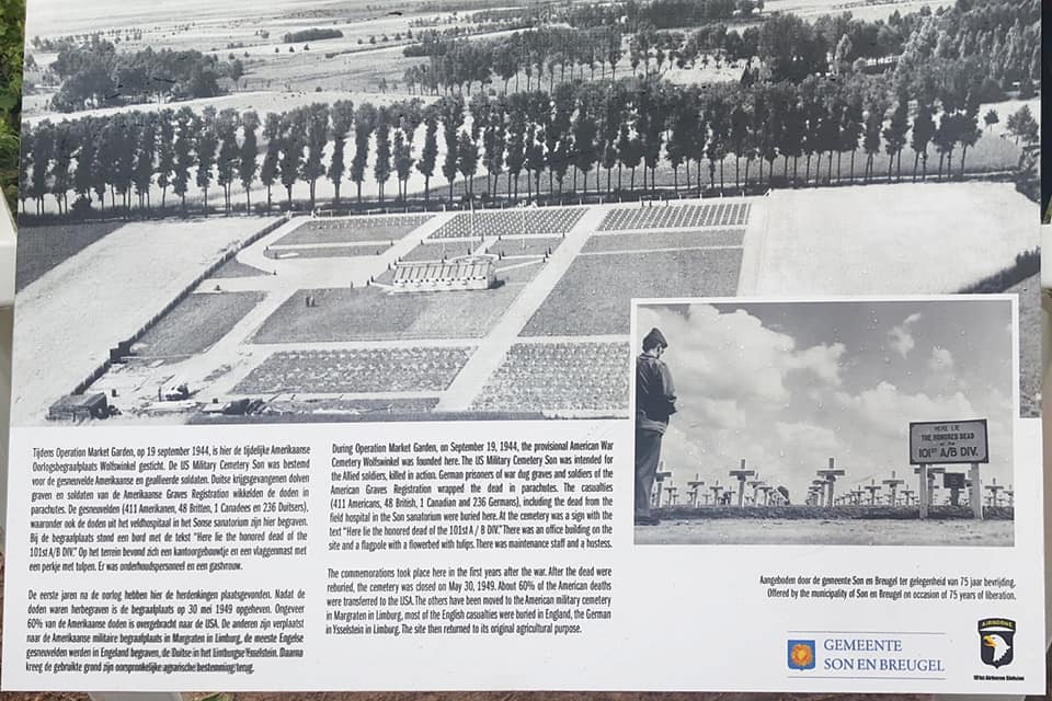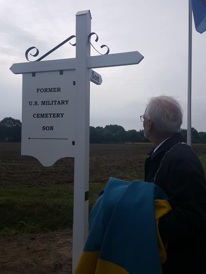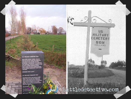 "This road led to the fields where from 1944 to 1949 the American and Allied temporary cemetery was located behind the 'Waterhoef' Farm.This is where the soldiers rested who paid the ultimate price for our freedom. Remember them all!" |